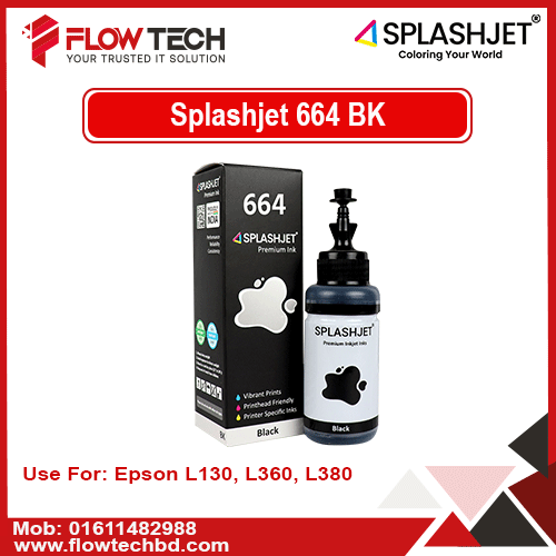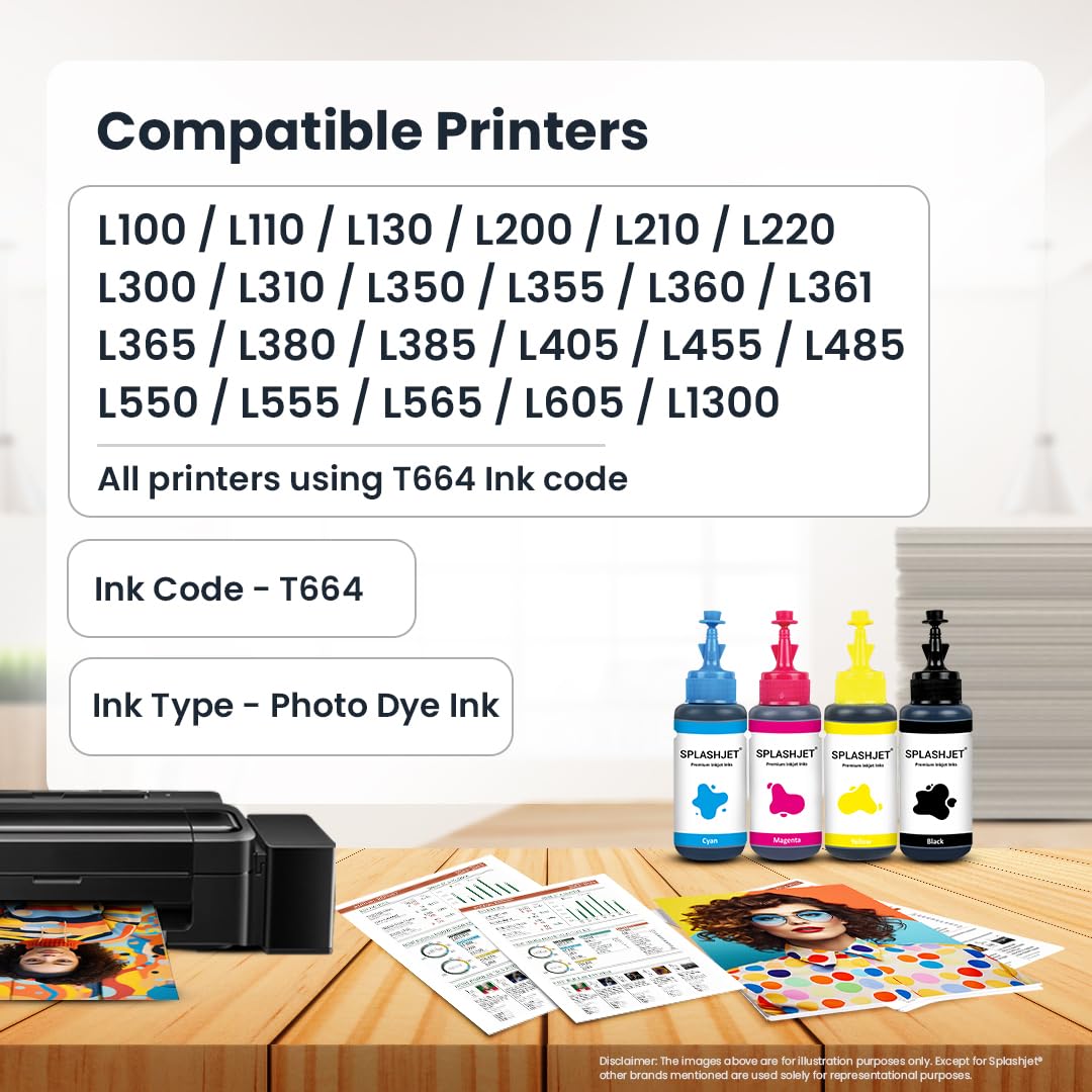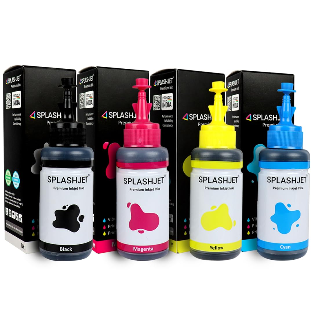 Splashjet 664 Ink is a premium refill ink set designed for Epson L130 printers, delivering sharp, vibrant prints with every use. Each bottle contains 70ml of high-density dye-based ink, engineered for smooth performance, high yield, and exceptional color accuracy. The CMYK set is perfect for everyday document printing and color photo output, offering an affordable and reliable alternative to original Epson 664 ink bottles. Compatible, efficient, and mess-free — a top choice for refill users.
